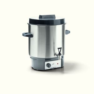 Der Kochautomat für das Kochen und Warmhalten von Glühwein und Punsch. Der Topf besteht aus rostfreiem Edelstahl 18/10 und besitzt einen verchromten ½"-Abfüllhahn.