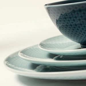Noch mehr Kombinationsmöglichkeiten: Wir haben unsere erfolgreiche Geschirrserie ›Junto‹ um drei hellblaue Teller, eine hellblaue Platte und ein dunkelblaues Schälchen erweitert. Die neue luftig hellblaue Glasur mit feinem Rautenrelief bringt eine frische Note auf den Tisch und ergänzt den erdigen Bronzeton und das elegante Dunkelblau der Serie.